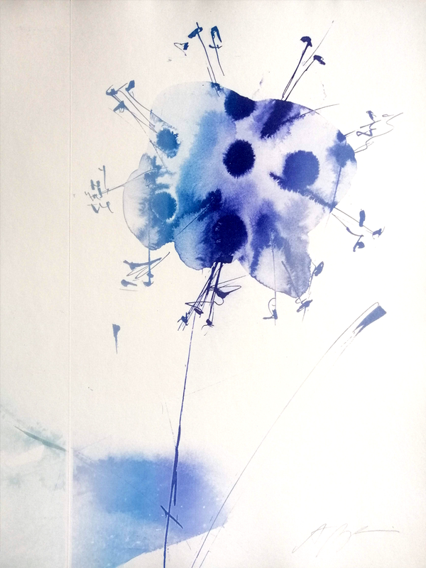 Dopo una traccia iniziale incisa con il procedimento tradizionale della Ceramolle, l’artista ha lavorato sulla matrice sia durante la fase di stampa - creando zone di saturazione di colore o altri effetti monotipici - che direttamente sul foglio già stampato, con matite e carta vetrata.